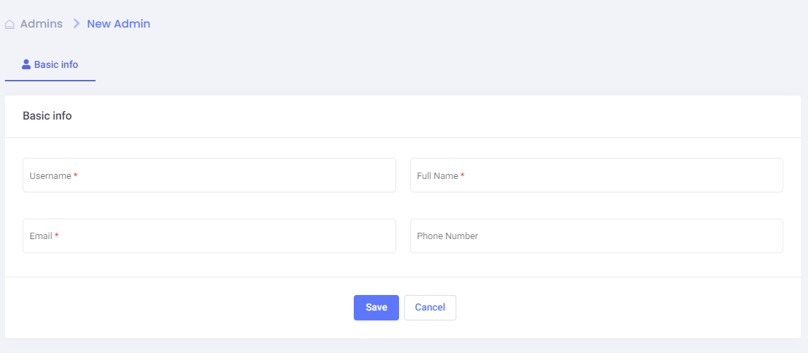 - Admin can add new admin through create admin button which redirect user to create admin page that has been explained above