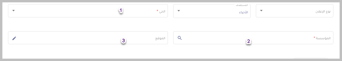 - الفئة المستهدفة من الإعلان : وهنا يوجد نوعان إما حيّ / أحياء أو مشروع