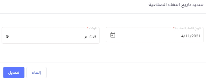 في حال انتهى تاريخ البطاقة المنشورة يمكن للمدير تمديد تاريخ الانتهاء من خلال الضغط على زر تمديدحتى يتمكن من تمديد تاريخ انتهاء البطاقة