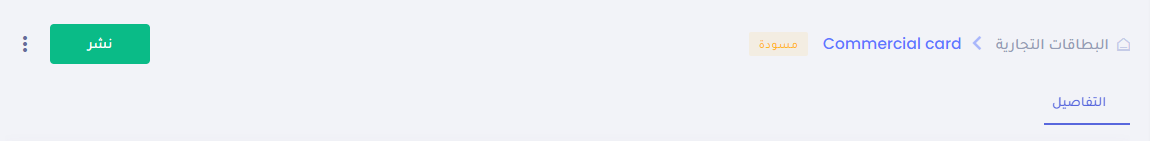 - في حالة قام المدير بتحديد حالة البطاقة كمسودة عندها لا تظهر في التطبيق ولا في جدول البطاقات التجارية.