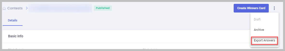 In case the card type is internal then the admin has the option to export answers in the CSV format