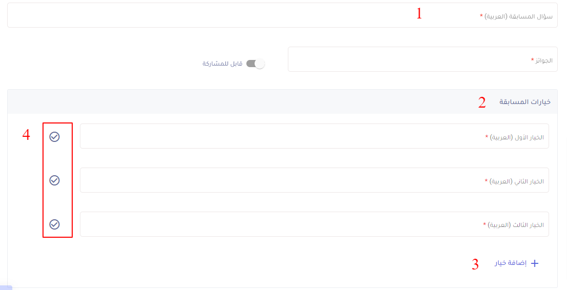 - خيارات المسابقة والتي هي على الاقل هي 3 على الأقل و 5 على الأكثر