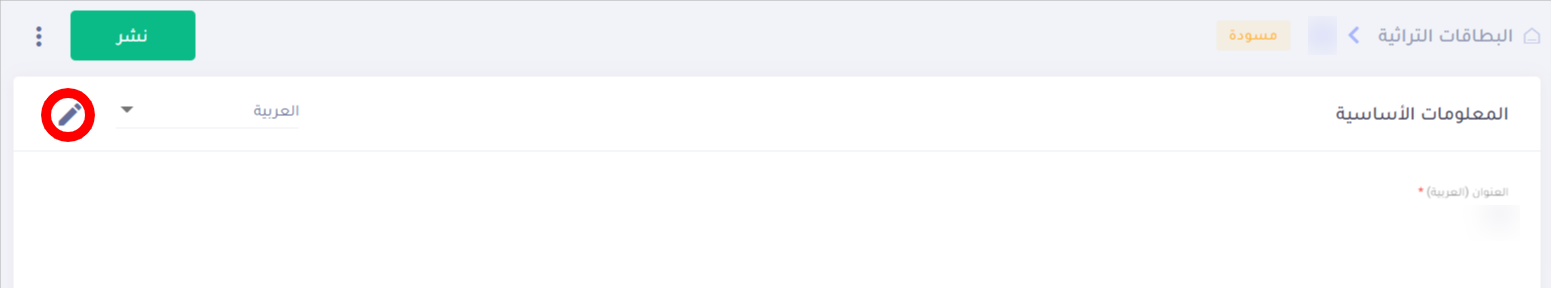يمكن لمدير فريجنا أن يقوم بتعديل البطاقة التراثية في حالة كانت مسودة فقط وهنا يقوم المدير بالضغط على زر التعديل ليقوم بتعديل المحتوى الذي يريد و ضغط زر حفظ لحفظ التعديلات الجديدة