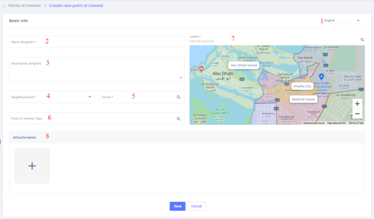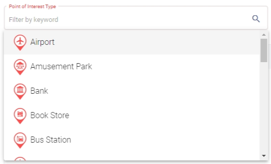 - Type (required) : The type of interest of point must selected from the list also admin can use search filter to got fast result