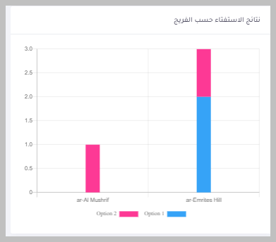 - يتم عرض مخطط لنتائج التصويت حسب كل فريج