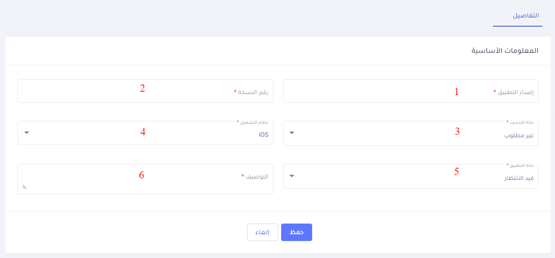 - إصدار التطبيق (إجباري) : يلزم على المدير اضافة إصدار التطبيق