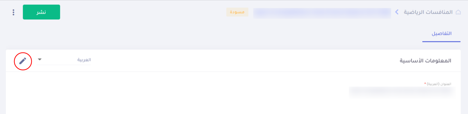 يمكن لمدير فريجنا أن يقوم بتعديل المنافسة الرياضية في حالة كانت مسودة فقط وهنا يقوم المدير بالضغط على زر التعديل ليقوم بتعديل المحتوى الذي يريد و ضغط زر حفظ لحفظ التعديلات الجديدة