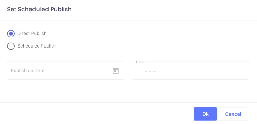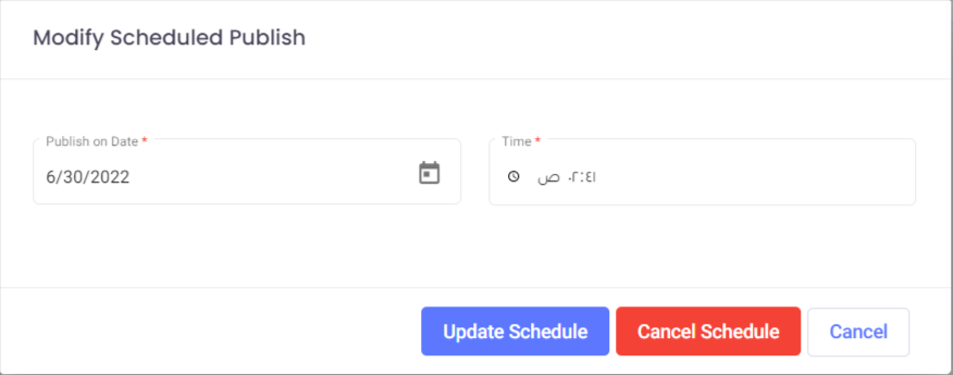 - Admin can either change schedule time and update or cancel schedule publish which return to previous publish button