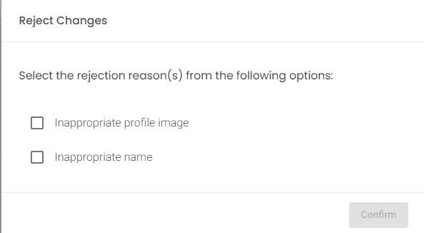 - Reject the user in this option you would ask to select the reason behind you reject and after confirm the user will be rejected
